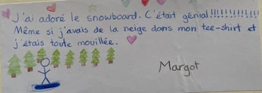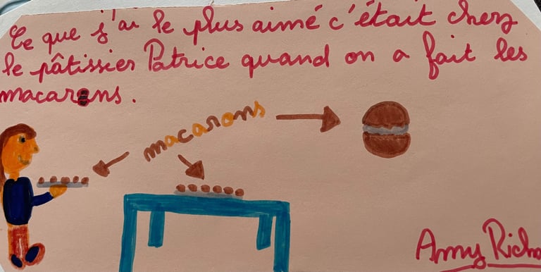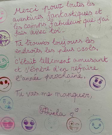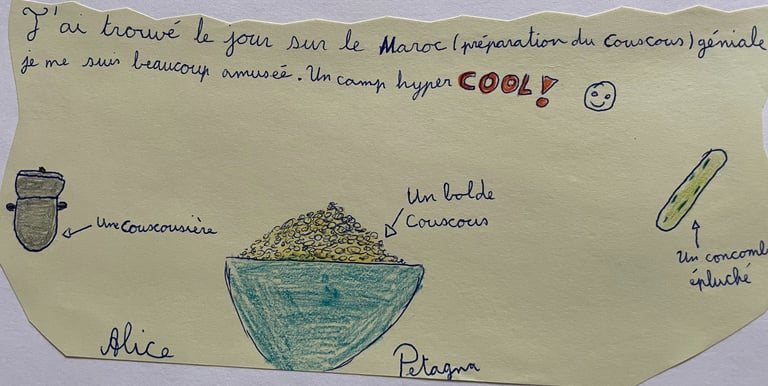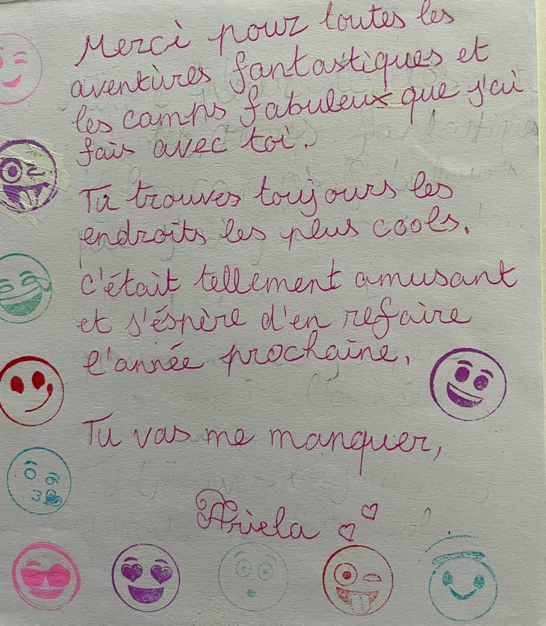 ”Voici une petit mot de mon fils Theo,"J'ai adoré ce camp et ça me fait plaisir quand on a fait les cake-pop."